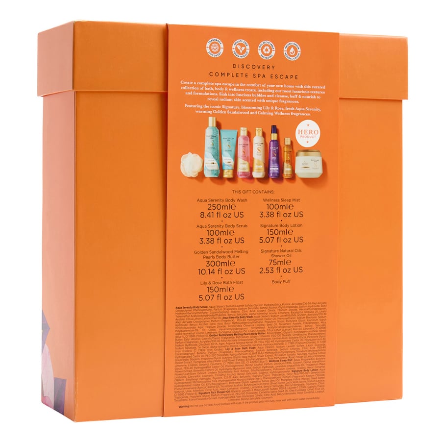 Create a complete spa escape in the comfort of your own home with this curated collection of bath, body & wellness treats, including our most luxurious textures and formulations. Sink into luscious bubbles and cleanse, buff & moisturise to reveal pampered skin scented with unique fragrances.